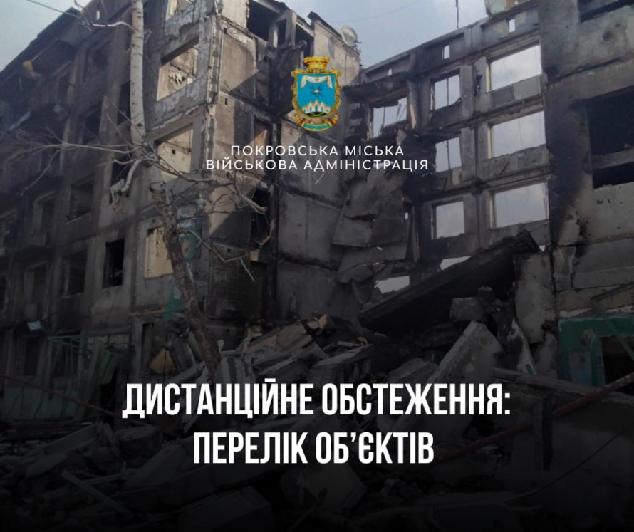 Детальну інформацію щодо об'єктів, відносно яких вже проведене дистанційне обстеження, ви можете дізнатися на сайті Покровської МВА у розділі «Громадянам», підрозділ «єВідновлення» або за посиланням https://pokrovsk-rada.gov.ua/uk/page/informaciya-pro-provedennya-distancijnogo-obstezhennya.