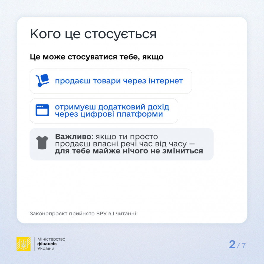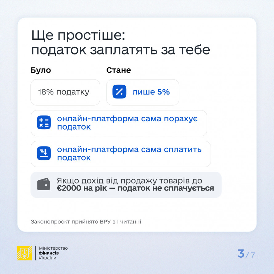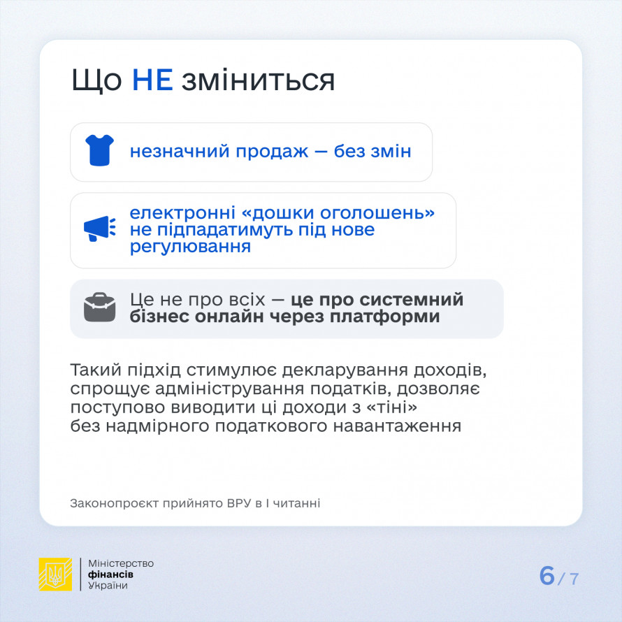Важливо, що для цілей міжнародного обміну інформація про користувачів платформ, які здійснили за рік менше 30 продажів товарів на суму до 2 тис євро, не передаватиметься до ДПС.