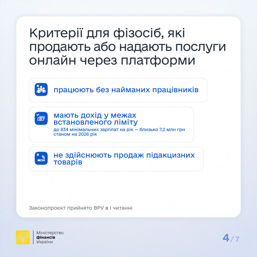 Законопроєкт вводить спеціальний підхід до оподаткування доходів фізичних осіб, отриманих через цифрові платформи.